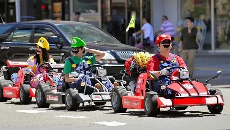 在日本,也有一家企业不仅仿了,还跟原创品牌杠上了,那就是日本的“MariCar”公司。这家公司以提供COSPLAY成任天堂游戏《超级马力欧》角色来驾驶卡丁车的出租服务为营运内容。