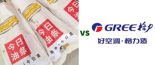 除此之外也“撞脸”一些其他品牌,比如西贝、卫龙、格力等。柜台的展板可以看到西贝莜面村的样子,侧面的灯箱广告是当初卫龙辣条模仿Apple的痕迹,还跳出餐饮行业模仿格力,“好油条,今日造”。