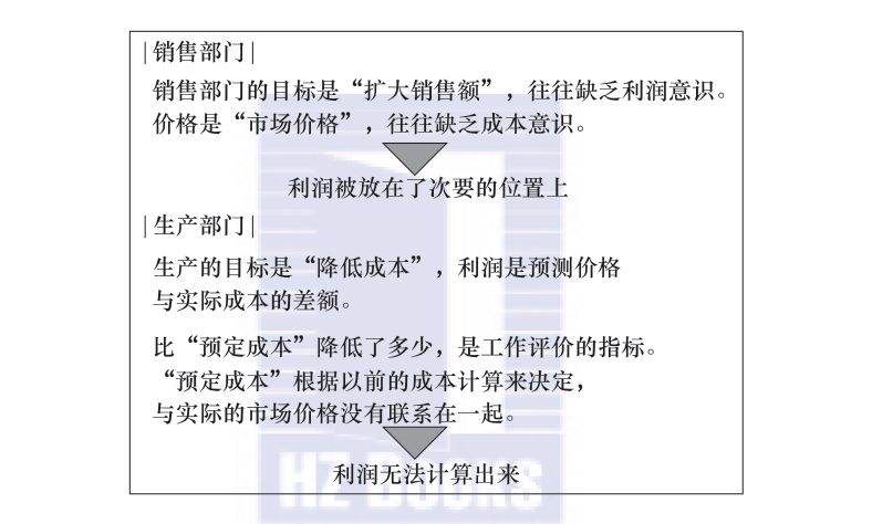 就拿制造业企业来说,一般来讲,生产部门是按照规定好的成本和经费来编织预算,以将实际成本控制在预算以内为目标。最终公司是否能赚钱,这就要等到销售部门把产品卖给顾客,公司把所有决算都做完之后才能知道。而且这里所算出来的利润,哪些是销售部门创造的,却无从知晓。