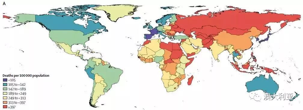 先来看看因饮食结构问题引发的死亡率的世界形势图——
