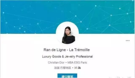 Linkedin上显示,李然从2013年至今,都在担任欧洲奢侈大牌Dior的客户主管,并和查尔斯一起定居在上海。