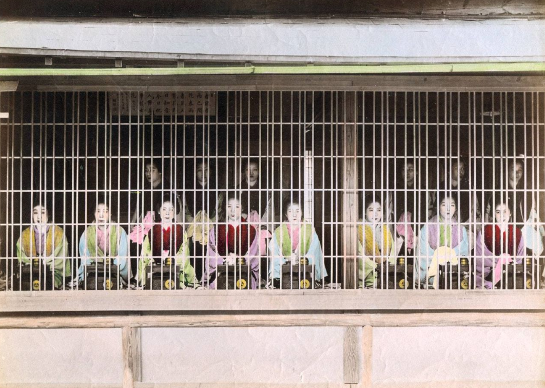 在日本,就如开头所提到的一样,能追溯到起码公元8世纪。而到了元和3年,也就是1617年,当时的幕府对这一行进行了整顿。把大部分店面都整合到了吉原地区。同时将该地区设立为专门允许特殊服务的壳春街。