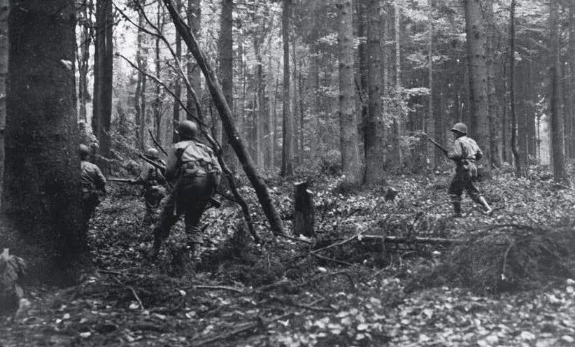 许特根森林一役,伦菲尔德受命加入德军275步兵师,统管一个连。当时,由于双方谁都不肯退步,战争极为惨烈。和其他德军、美军一样,伦菲尔德的二连也在战场上与美军胶着,双方都损失惨重。连日打响的战争,令整个战场满目疮痍,尸横遍野。双方虽短暂停战,但却谁也不敢掉以轻心。