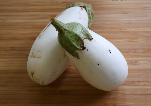 白皮茄子外观修长青白、肉厚、味道鲜嫩、煮而不烂。