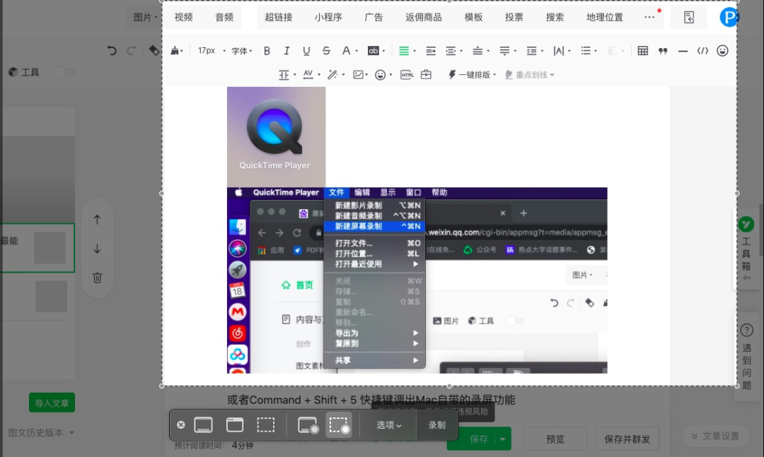 或者Command + Shift + 5 快捷键调出Mac自带的录屏功能