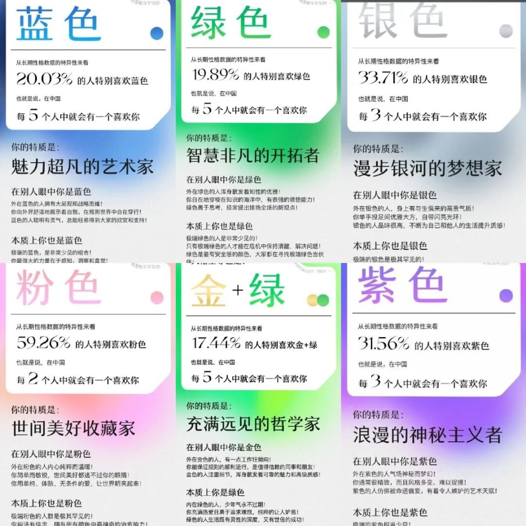 再到前不久的网易云性格颜色测试
