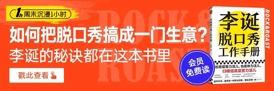 这本《李诞脱口秀工作手册》已经在得到电子书上架了,会员可以免费畅读(戳此👉加入电子书会员)。这是李诞写给所有创意工作者的一本工作手册。书里既有具体的创作方法,也有他对待工作的态度,能让你收获信念和实实在在的方法。周末正适合刷书,点击下方图片开始畅读~