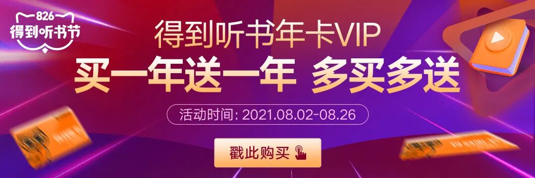 今天给你们推荐的是得到听书四周年活动,倒计时只有3天了!现在加入得到听书,可享年度会员买一年送一年,8月26号就要截止!平均每天只需要5毛钱,就能无限次畅听将近2700本听书!这可是得到听书史上优惠力度最大的活动,你可别错过!