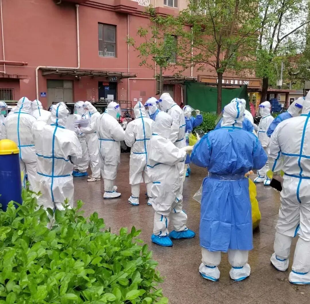 11点左右,一队大白进入小区,每栋楼前依次站定几个。