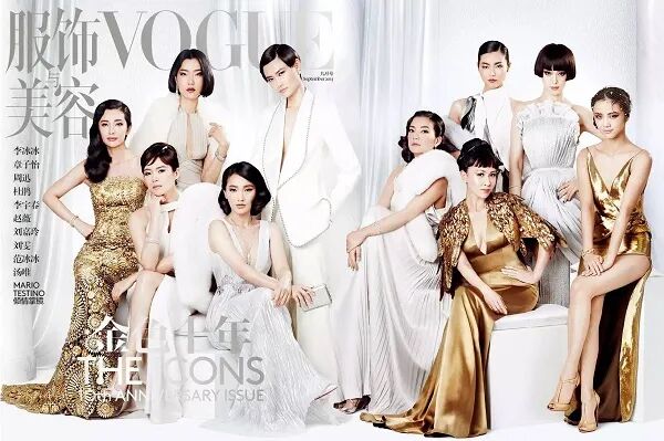 2015年,时尚杂志《VOUGE中国》推出了一期史无前例的封面——集齐国内十位最当红女明星,以纪念杂志出版十周年。