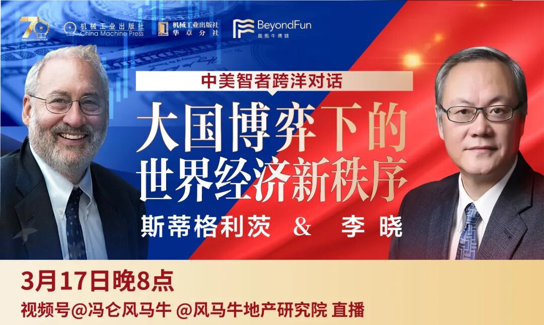 3月17日晚8点,诺贝尔经济学奖得主斯蒂格利茨与吉林大学教授李晓将就「中美两国的经济增长前景及其面临的主要问题」「如何看待中美关系发展前景」等话题展开对谈。届时,「冯仑风马牛」视频号将直播这场对谈,欢迎收看。