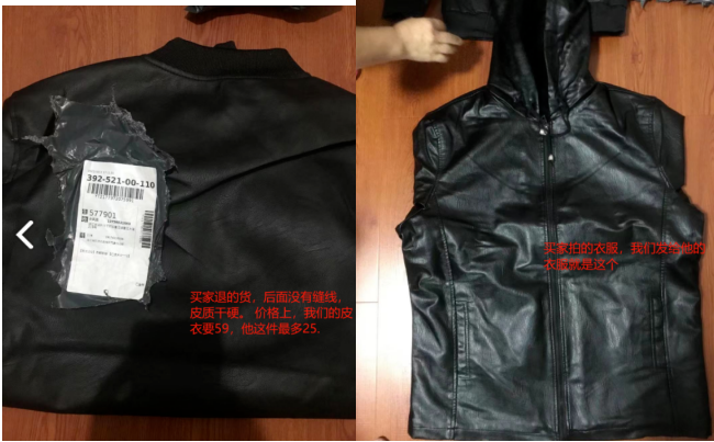 在事件的描述中,王蔑笑写到,“一个买家到我这里买了一件价值58.96元的衣服,一句话没说就退货,我们收到货后打开发现不是我们的衣服。我们联系买家,发现买家已经拉黑我们了,然后我们换了个手机打,他接了,并且也承认了,他知道我们就是没办法,拼多多客服就是这样的。拼多多这边买家急速退款,我们进行申诉并且上传了所有的买家乱退货证据。但是拼多多客服还是驳回。”