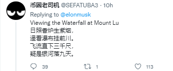 当外国人终于弄明白了什么是“豆子“和”豆萁“,我们的语文课堂也终于可以往后推进一步,做到阅读理解部分了。到了下午,评论从“这首古诗讲了什么”转入了“马斯克到底想要讲些什么”的进度上。
