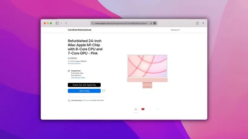 近日,翻新版的 24 英寸 M1 iMac 机型上架了美国和英国的苹果翻新商店。