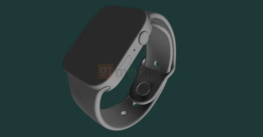 渲染图显示,即将推出的 Apple Watch Series 7 将具有平坦的边缘,更窄的边框带来更大的显示屏,以及更突出的扬声器,背部将由与目前 Apple Watch Series 6 相同的健康传感器配置组成。