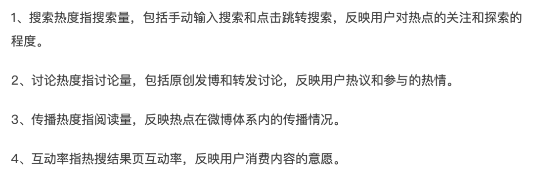据悉,热搜词的热度计算公式为:(搜索热度 + 讨论热度 + 传播热度)× 互动率。