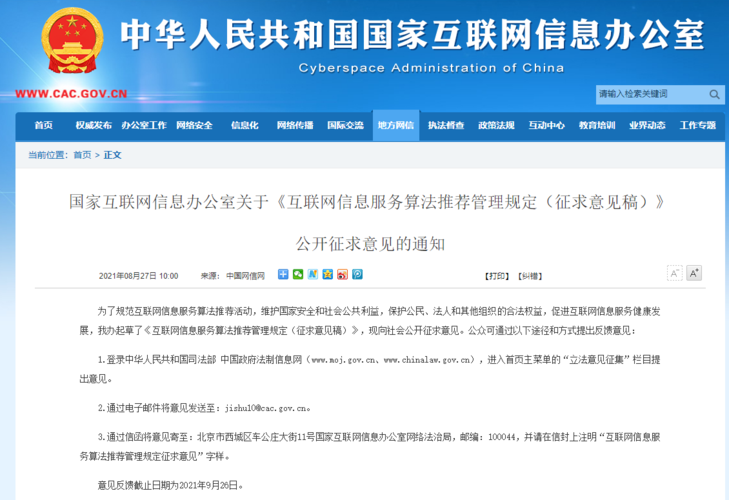 近日,有关部门就关于互联网信息服务算法推荐问题公开征求意见。
