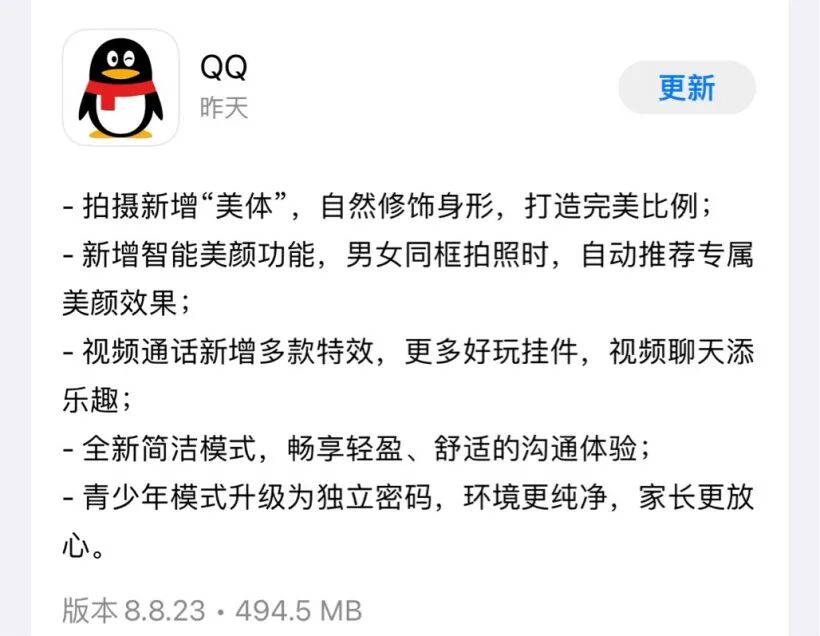 手机 QQ iOS 版迎来 8.8.23 正式版更新,上线美体和智能美颜功能。