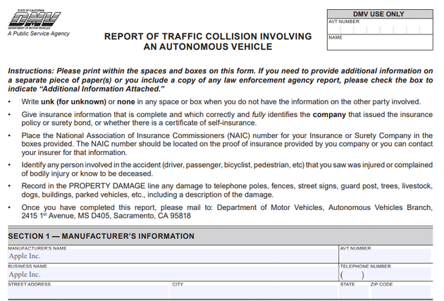 据外媒 MacRumors报道,加州机动车辆管理局(DMV)称苹果公司的两辆自动驾驶汽车 8月在手动模式下发生了轻微碰撞。