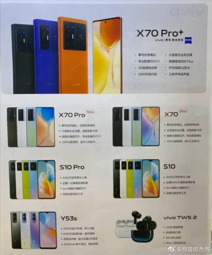 今日,vivo X70 Pro+ 的第三个配色曝光,数码博主 @熊猫很禿然 公布了一张宣传图,可以看到该机还有一个蓝色版本,@熊猫很禿然 称是“素皮蓝”。
