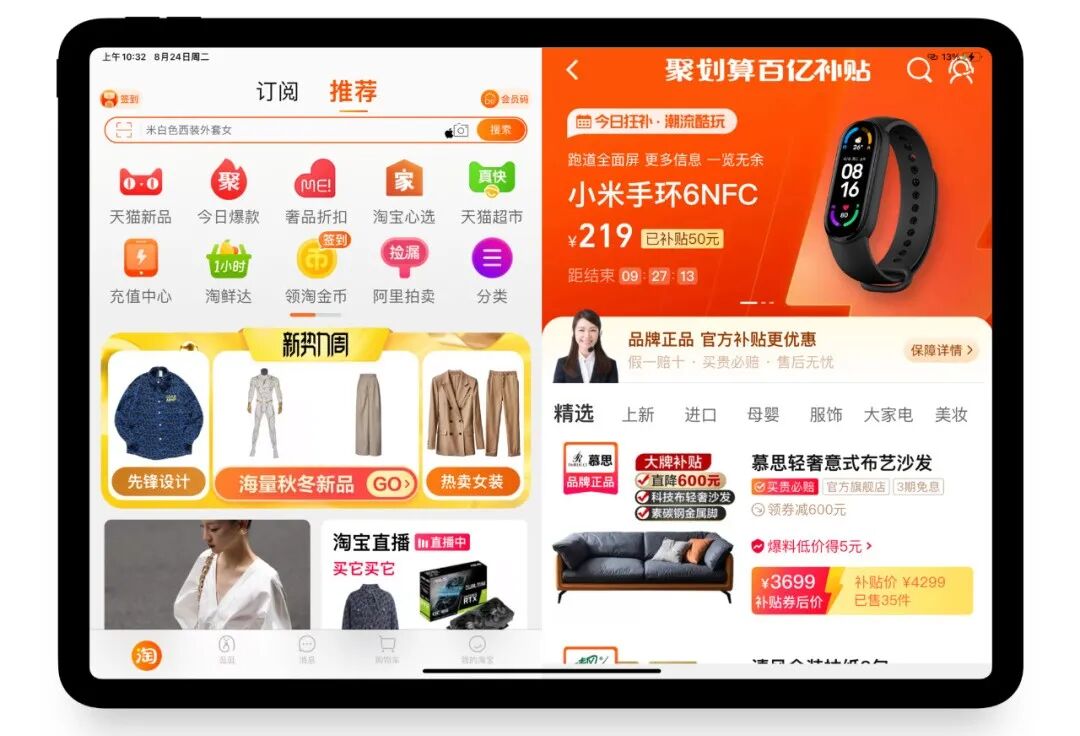 今天,淘宝官方宣布,淘宝全新适配 iPad 推出新版本,适配横屏体验。