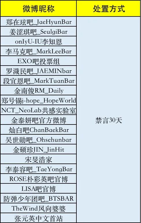 新浪微博管理员发布公告,经网友举报,有部分粉丝账号在微博传播非理性追星应援内容,导向严重错误。对此站方及时对 @张元英中文首站 等 21 个账号予以禁言 30 天的处置,并对相关违规博文进行了清理。微博坚决反对此类非理性追星行为,并予以严肃处理。