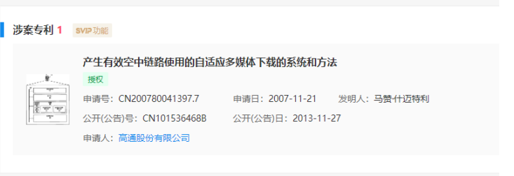 企查查信息显示,此前,苹果公司曾就高通公司拥有的专利“产生有效空中链路使用的自适应多媒体下载的系统和方法” 提出无效请求,中国国家知识产权局判定该项专利无效。