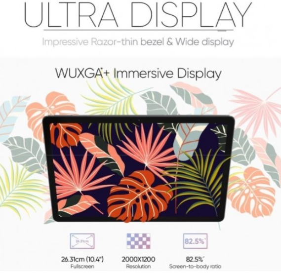 报道,realme 的海外官网显示,realme Pad 平板电脑将配备 10.4 英寸的 WUXGA + 显示屏,屏占比为 82.5%,分辨率为 2000*1200。