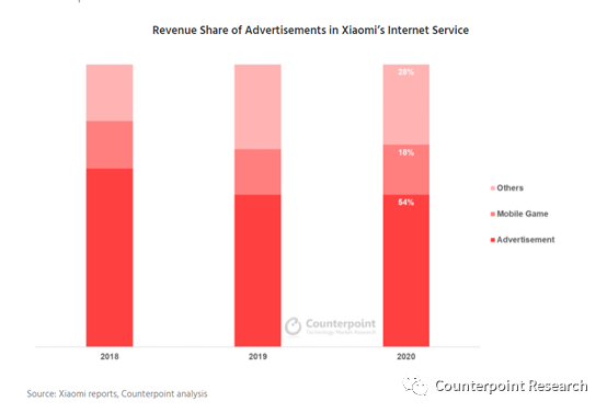 报告称,小米的互联网服务包括手机游戏运营、电子商务(E-commerce)、金融科技和广告等服务产品。目前,小米的互联网服务大部分收入来自于广告。