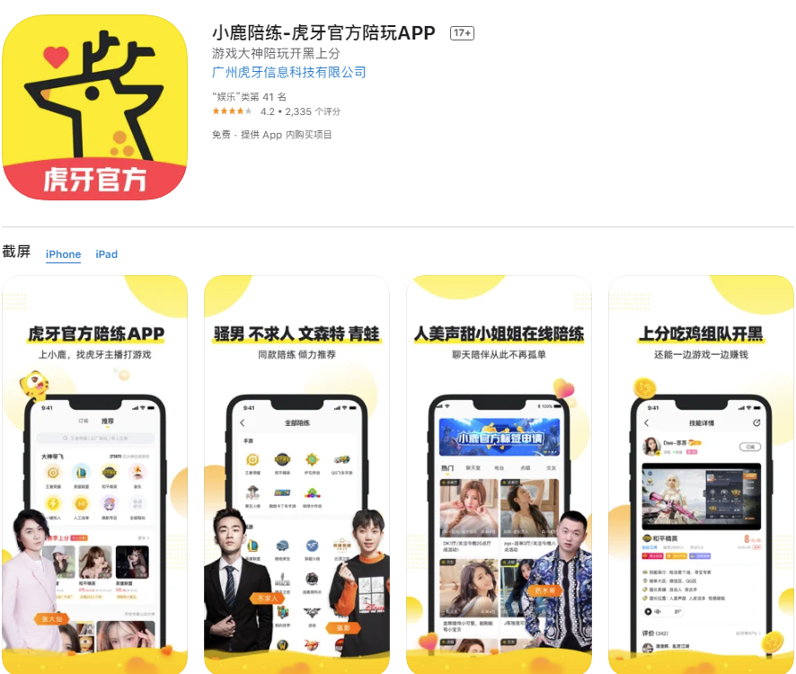 近日,欢聚集团旗下 Hello语音、虎牙旗下小鹿陪玩、比心、咪呀、可可西里、一派陪玩、比伴陪玩共 7 款陪玩软件被无限期下架。