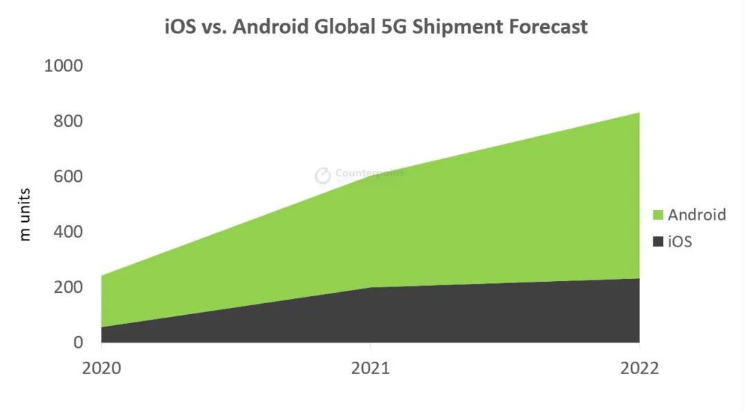 市场调研机构 Counterpoint 的最新报告显示,苹果已经在售的 iPhone 12 系列和即将推出的 iPhone 13 系列,在 2021 年第四季度,将会把 5G 手机的出货量拉到接近 2 亿部的高度,2021 年全年,5G 手机出货量将超过 6.05 亿部。