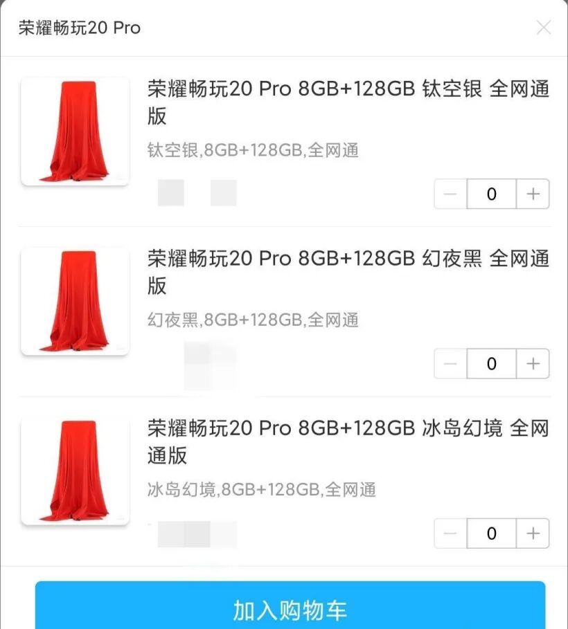 有报道称,荣耀畅玩 20 Pro 已经上架了电商平台,包括钛空银、幻夜黑、冰岛幻境三种配色,提供 8+128GB 存储,但不清楚是 4G 机型还是 5G 机型。