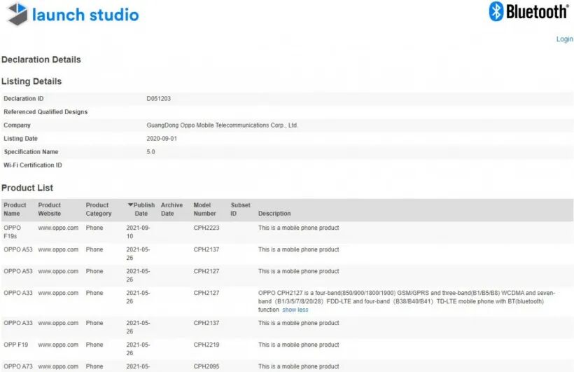 OPPO 于 3 月推出了 F19 Pro 和 F19 Pro+ 5G,并于 4 月推出了 F19 手机。有消息称,OPPO 将进一步扩大 F19 系列的阵容,推出已通过蓝牙 SIG 认证的 F19s。
