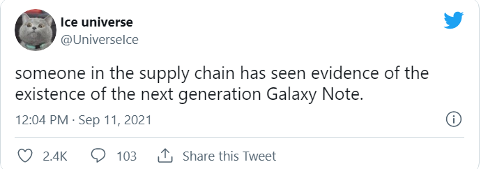 今年,三星并未推出 Galaxy Note 21 手机,以此来确保三星 Galaxy Z Fold 3 折叠屏手机的成功,但似乎这一决定可能不适用于今后的每一年。根据爆料人士 Ice Universe 的说法,供应链传言说三星正在为明年的 Galaxy Note 手机做准备。