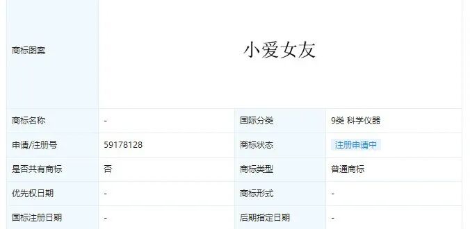 近日,小米科技有限责任公司申请注册小爱女友商标,国际分类涉 9 类科学仪器,企查查 App 显示,目前商标状态为注册申请中。