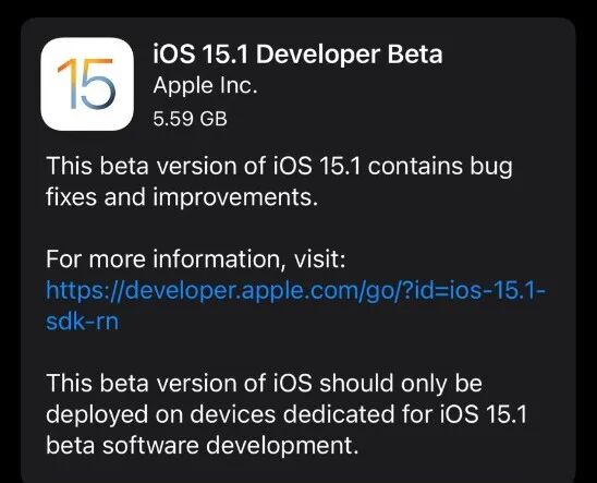 今日,苹果向 iPhone 和 iPad 用户推送了 iOS/iPadOS 15.1 开发者预览版 Beta 更新(内部版本号:19B5042h)。