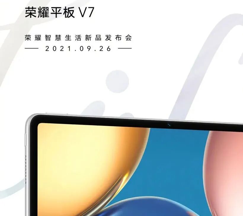 今日,官方宣布将于 9 月 26 日发布荣耀平板 V7,支持多屏协作,从图中可以看到,该平板外观设计与之前的荣耀平板 V7 Pro 不同,中框不是直角设计。