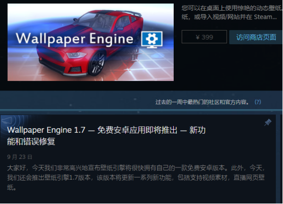 官方表示,“在过去的几个月里,我们专注于开发壁纸引擎的安卓版本,该版本可支持动态画面和视频壁纸。壁纸引擎的安卓应用将对所有人免费。”官方还保证,安卓版本将与 Windows 版本一样,不含任何隐藏消费或广告推广,也不会收集任何个人数据。