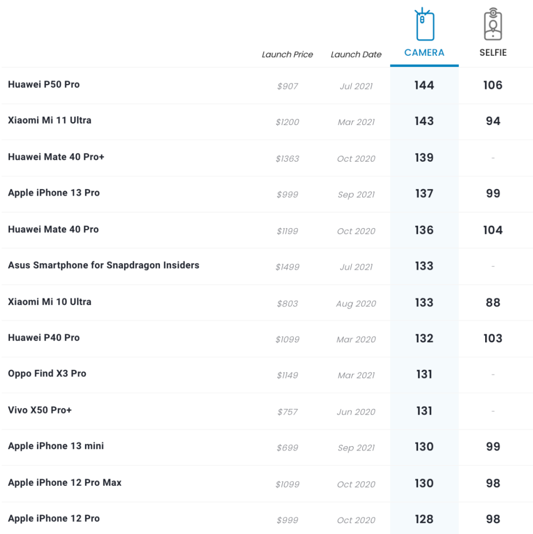 今日相机评测机构 DXOMARK 公布了苹果 iPhone 13 Pro 的相机评分,该机总分为 137 分,在榜单中排名第四,不及华为 P50 Pro、小米 11 Ultra 和华为 Mate40 Pro+。