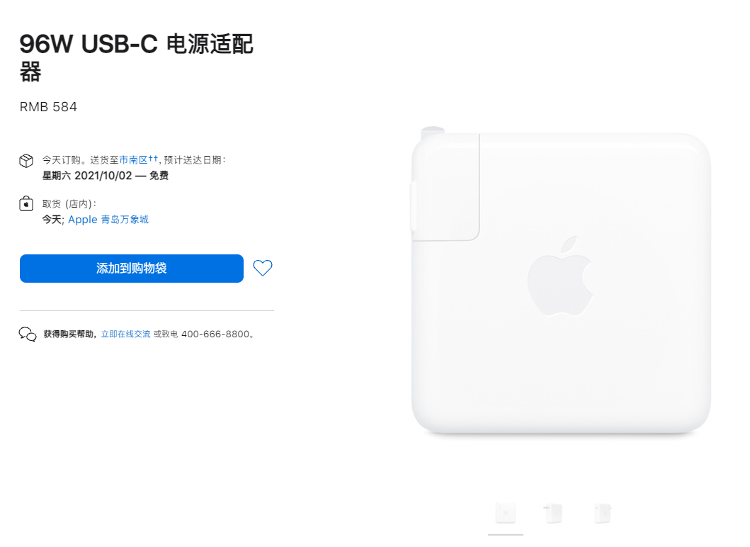 据了解,苹果这款 96W 电源适配器可以用于 MacBook Pro 16 英寸版等产品,采用折叠插脚、USB-C 接口。这款产品海外售价 79 美元,中国大陆地区售价 584 元。IT之家了解到,目前该产品在国内依旧有货,可以正常发货或者到线下店取货。