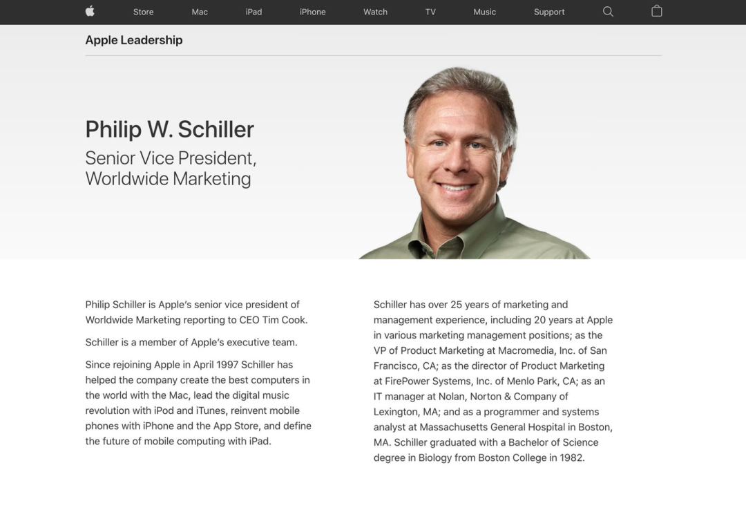 报道称,在过去两个小时左右的时间里,苹果领导层页面与新闻发布页面一直在出现错误。苹果错误地将菲尔・席勒(Phil Schiller)列为全球营销高级副总裁。席勒去年 8 月辞去了该职位,并担任苹果顾问(Apple Fellow)。不久之后,苹果撤下了席勒的传记和整个领导层页面。