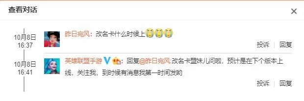 LOL手游下个版本上线改名卡