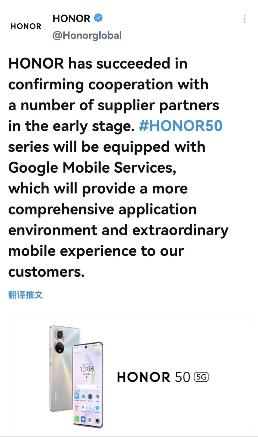 今天,荣耀宣布已经与谷歌恢复了合作,荣耀 50 系列等新机将会支持安装谷歌的 GMS。
