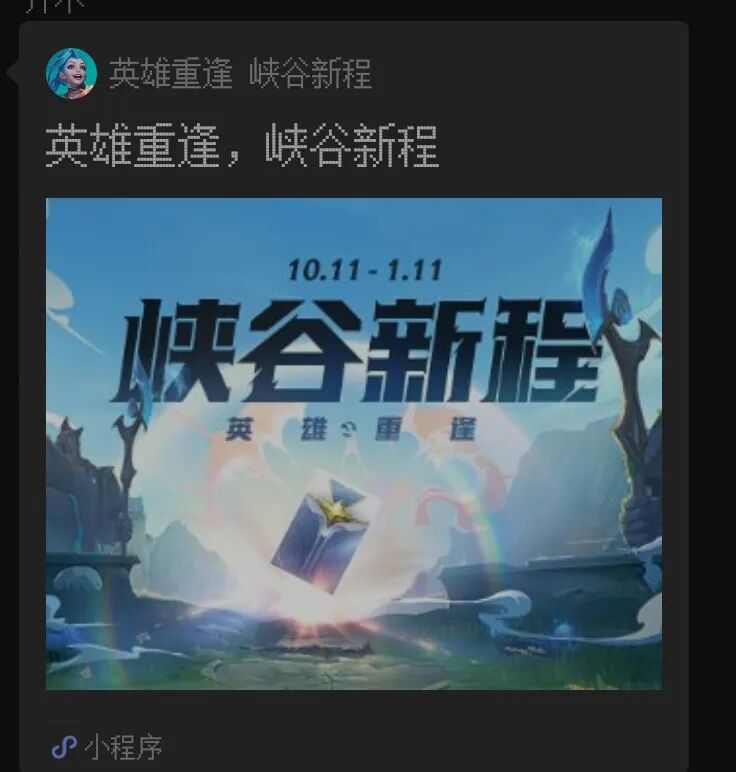 《英雄联盟手游》最近开启了公测,并推出了“英雄重逢,峡谷新程”分享免费获得皮肤英雄的活动。此前报道称,该活动的小程序因为分享太多被投诉到被屏蔽,已经无法正常查看并参与活动。