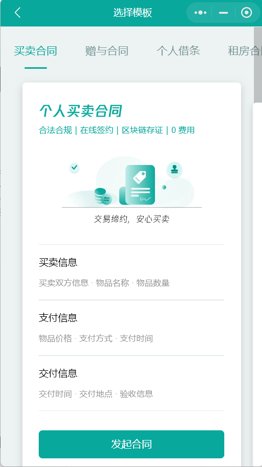 近日,腾讯电子签上线了“买卖合同”。根据官方的介绍,买卖合同主要为国家法律法规允许的各类合法商品买卖交易提供电子合同服务,暂不支持不动产及虚拟财产(含有价证券)买卖合同的签署。
