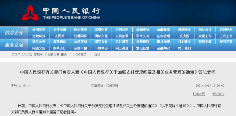 昨天,央行发布《关于加强支付受理终端及相关业务管理的通知》(以下简称《通知》),就支付受理终端业务管理、特约商户管理、收单业务监测等方面提出具体要求,并自 2022 年 3 月 1 日起施行。