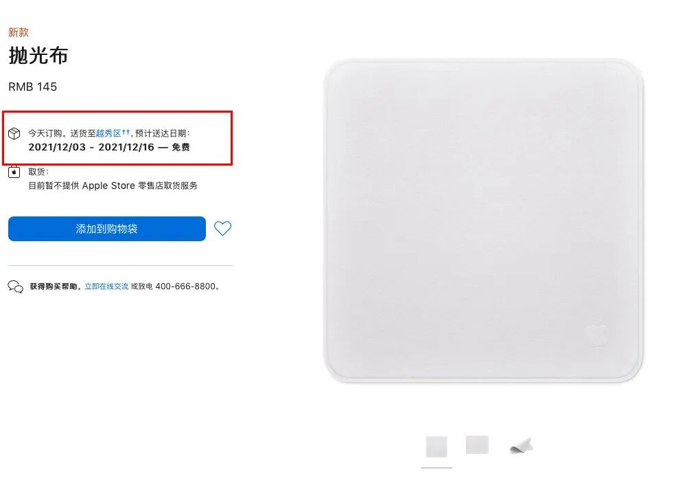今天,苹果官网上的首批抛光布已经售空。如果现在下单,最快需要等到 12 月 3 日才能送达。(来源:锋潮科技)