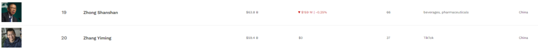 目前,农夫山泉创始人钟睒睒以 644 亿美元财富位居中国首富地位,张一鸣与他仅差 50 亿美元。阿里巴巴创始人马云排名第四,身价达 424 亿美元。