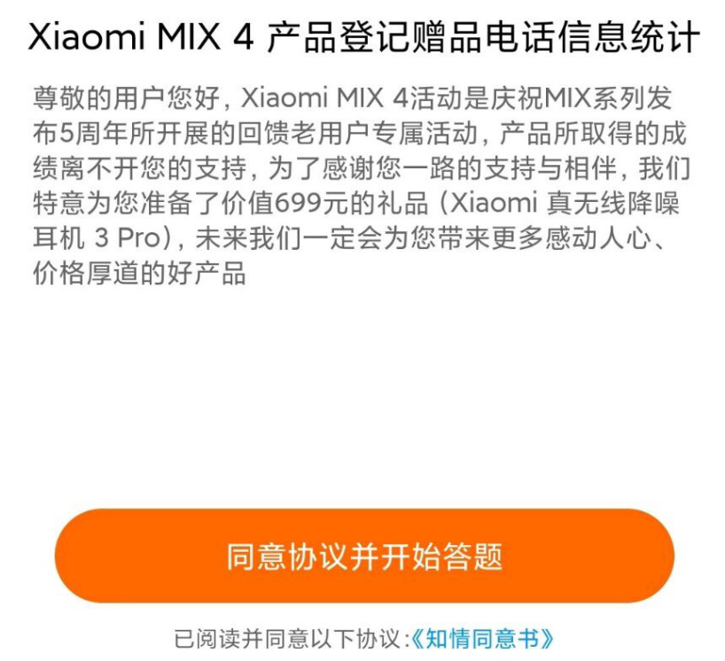 值得一提的是,小米为感谢老用户推出了一个老用户领耳机的活动,此前购买过小米 MIX 4 用户现可领取 699 元的小米真无线降噪耳机 3 Pro 一款,用户只需答题即可。(来源:IT之家)