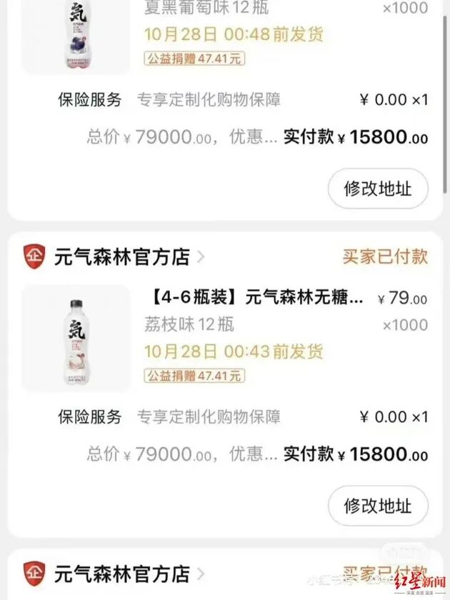 近日有消息称,元气森林淘宝店铺(元气森林官方店)因优惠设置错误,导致价值 260 元的产品,实付款只有约 10 元左右,共造成 200 多万元的损失。